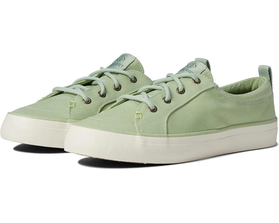 The Sperry® Crest Vibe Seacycled Pastel sneakers are the perfect blend of classic design and fresh style. SKU: #9604613Low cut style. Lace up closures. Pull tabs on heels. Logo on tongues and heels.Round toe silhouette. Textile uppers, linings, and insoles. Synthetic outsoles. Imported. Product measurements were taken using size 9, width M (B). Please note that measurements may vary by size.Measurements: