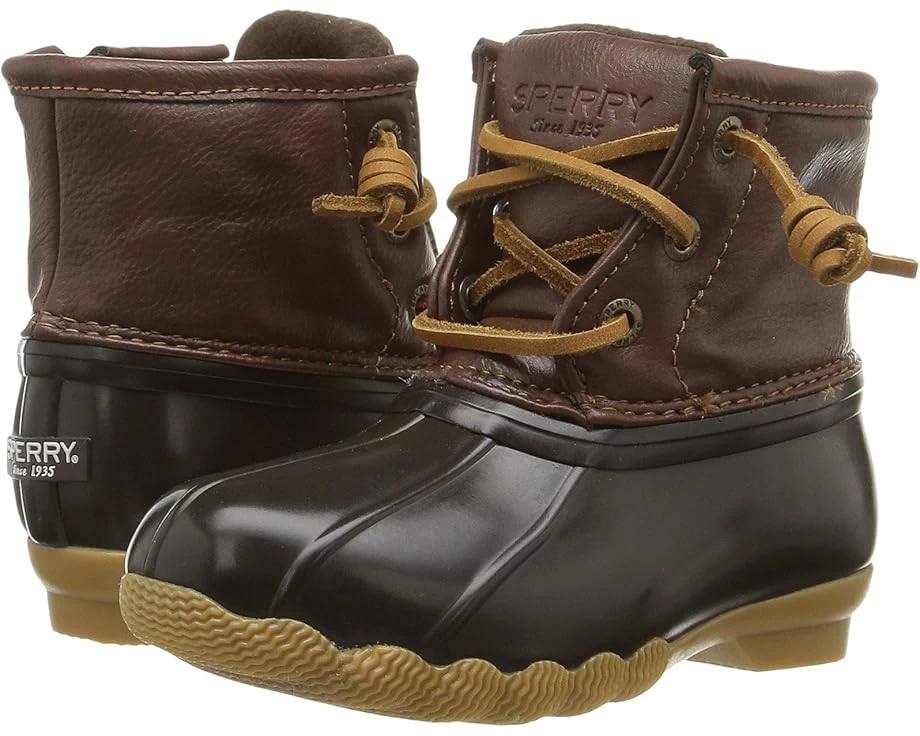 Combat cold, wet weather with the waterproof Saltwater boot from Sperry Top-Sider® Kids!SKU: #8777917Duck-inspired waterproof boot.Man-made and textile upper with a waterproof rubber foot.Rawhide lacing with rust proof eyelets for secure fit.Side zipper for easy on and off.Micro-fleece lining and cushioned insole for warmth and comfort.Nonmarking rubber outsole with Wave-Siping™ for ultimate wet/dry traction. Imported.Product measurements were taken using size 8 Toddler, width M. Please note that measurements may vary by size.Weight of footwear is based on a single item, not a pair.Measurements: