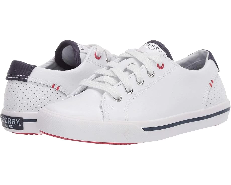 Look fashionably relaxed all summer long in the Sperry® Kids Striper II LTT sneakers.SKU: #9228988Leather upper features logo tag at the tongue.Lace-up closure for an adjustable fit.Padded collar for added comfort.Breathable canvas lining and cushioned footbed for all-day wear.Durable rubber outsole.Imported.Product measurements were taken using size 13 Little Kid, width M. Please note that measurements may vary by size.Measurements: