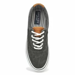 The ultimate get-wet Authentic Original Float black Sperry boat shoes maintain the shape of the original but feature an ingenious system of “portholes” and “gills” that drain water to keep feet fresh. Its non-marking rubber outsole and classic profile make it a match for land as well as sea. Floats in water.