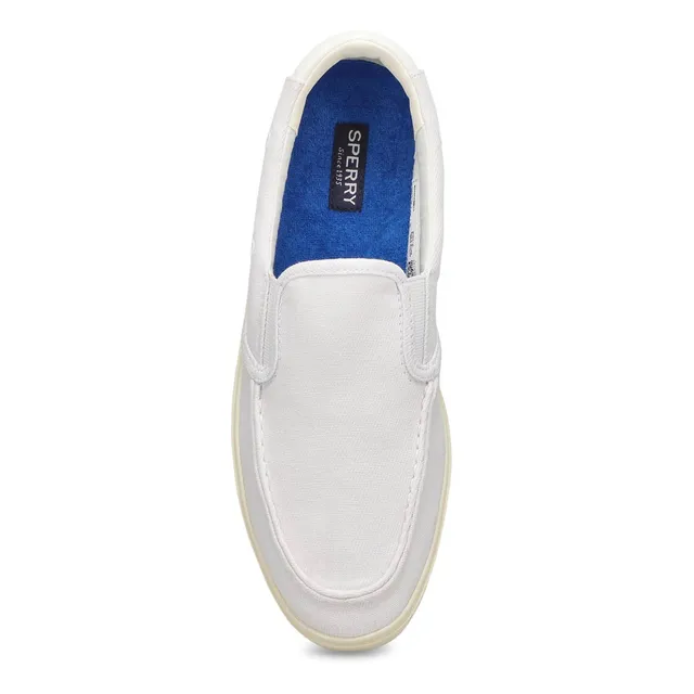 The relaxed Outer Banks Twin Gore deck sneaker from Sperry Top-Sider is softened by a washed twill upper that recalls longs days in the sun and sand. Its gore construction provides an easy, slip-on fit for last-minute beach runs and impromptu getaways. Removable footbed lined with inviting terry cloth. Non-marking rubber outsole with Molded Wave-Siping™ technology for enhanced traction.